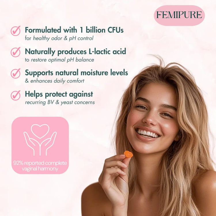 Keep your balance sweet with pineapple-powered probiotics. Two chewy gummies a day help you feel confident and clean—naturally!